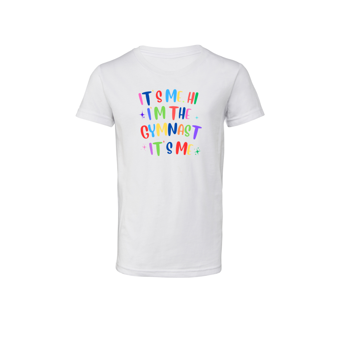 Introducing our vibrant and empowering "It's Me, Hi I'm the Gymnast It's Me!" t-shirt, specially crafted for female gymnasts who shine both on and off the mat. This dynamic design features a colorful array of text that exclaims their identity loud and proud. Available in five stunning colors - White, Athletic Heather, Turquoise, Purple Rush, and Light Pink - there's a shade to match every personality. Made with high-quality materials, this tee is as comfortable during training sessions as it is stylish for everyday wear. Join the gymnastics movement and express your passion with flair in this must-have garment! Plus, with its playful design, it's the perfect way to show off inner Swiftie!